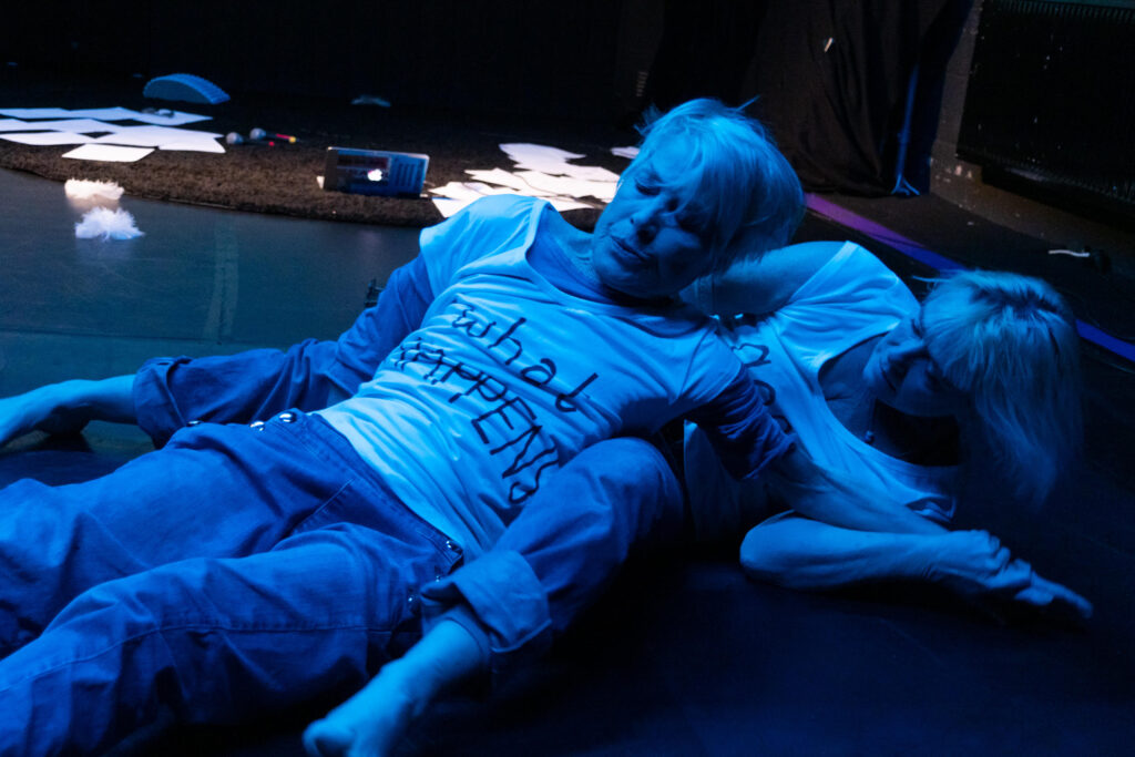 Katie Duck (currently in her 70s) and Sharon Smith (in her 50s), are two experienced artists who have worked and played together for over twenty years. They explore performative explorations , combining improvisation, sound, punk aesthetics, and feminist expression to disrupt conventional ideas of identity and age, with a dynamic and theatrical style that challenges norms. .They attempt to get off, shake off, and escape” the rigid constructs that define and police them. They are female. They are women behaving inappropriately especially for their age and stature. They have shared a friendship that has grown into family feelings.